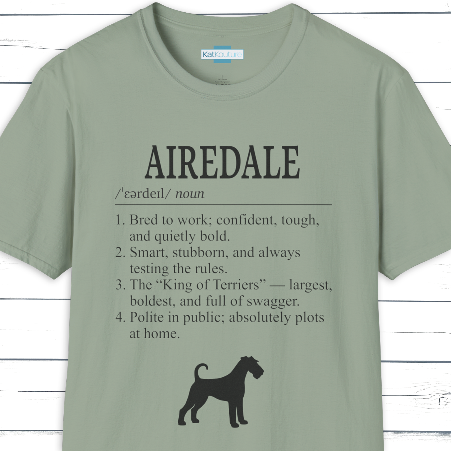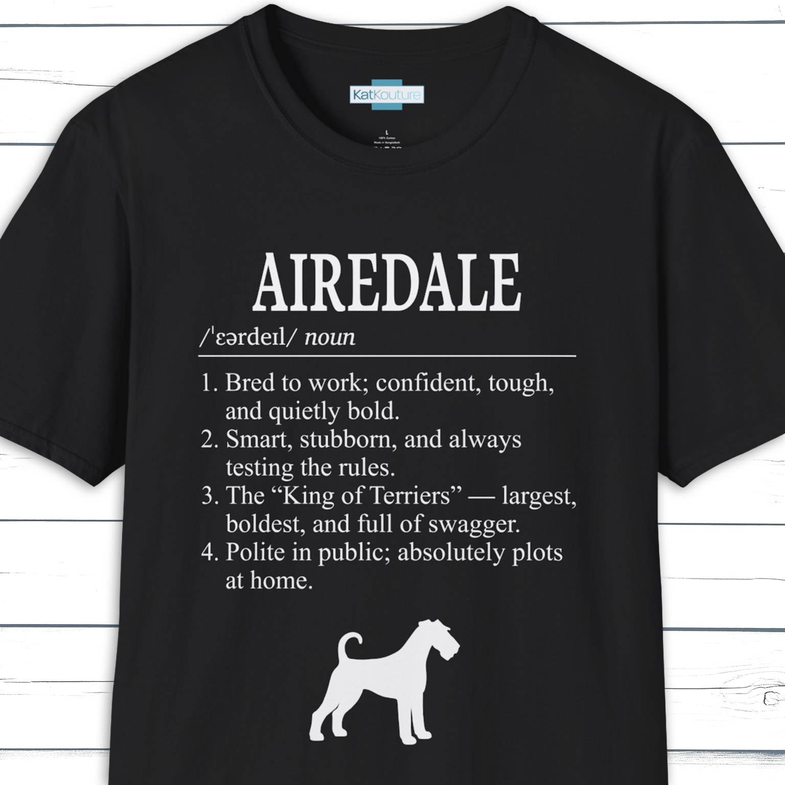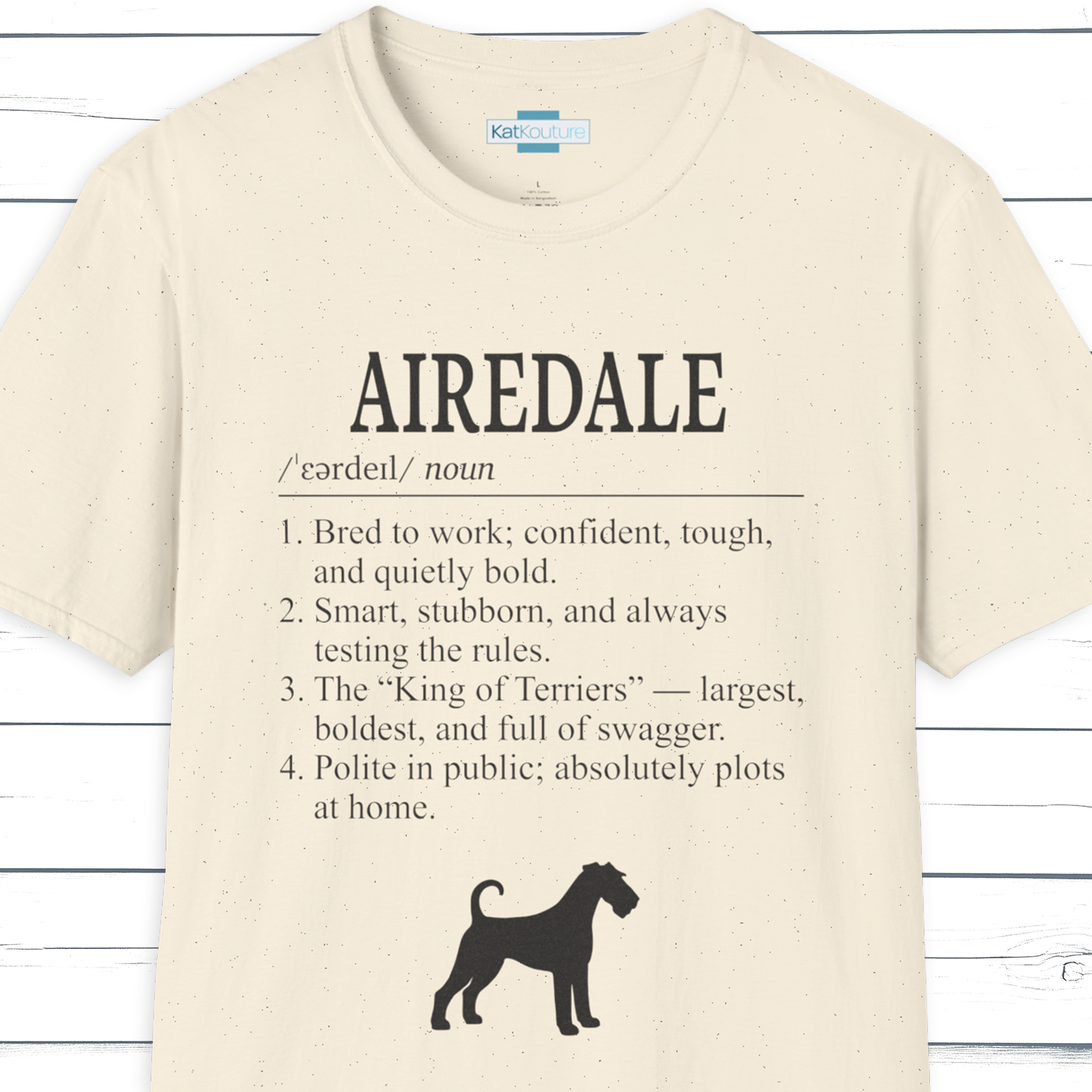 Part of KatKouture’s Dictionary Dogs collection, this Airedale Terrier Definition T-shirt celebrates the “King of Terriers” with a clean, minimalist dictionary-style layout. Featuring classic typography, IPA pronunciation, and four thoughtful traits, it’s the perfect mix of smart design and dry humour for Airedale people.