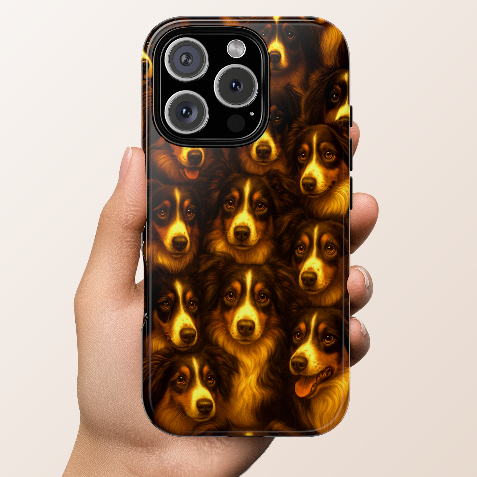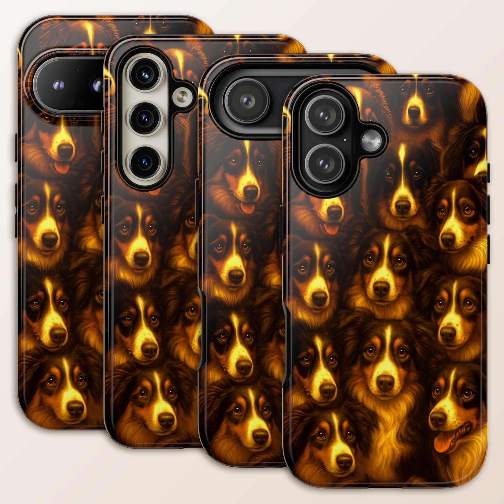 The loyal, clever, and playful Australian Shepherd — captured in rich, painterly detail by KatKouture. This portrait-style phone case celebrates the breed’s beauty with expressive faces, soft brushwork, and warm, vintage tones.