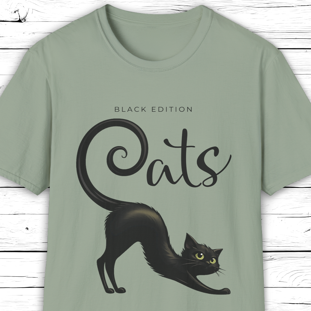 Black Cat - Black Edition features a sleek black cat in a dramatic stretch, with that signature curled tail and clean typography. Minimal, bold, and a little bit moody — made for black cat lovers, who love a sleek, moody cat design.