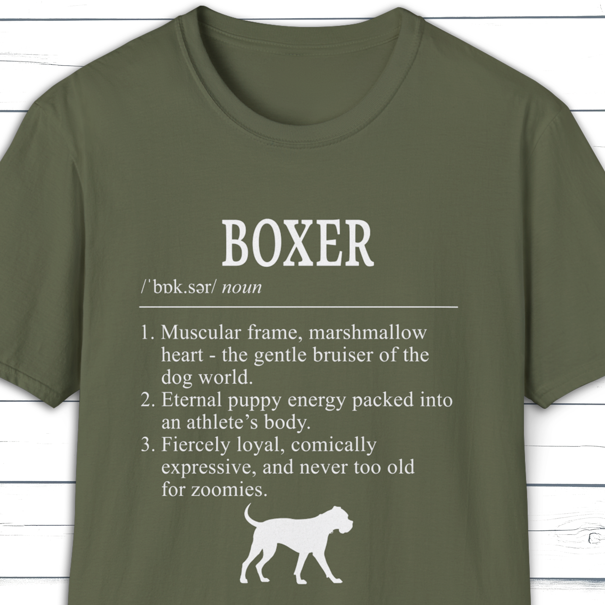 Part of KatKouture’s Dictionary Dogs Collection — a refined typographic design capturing the Boxer’s bold and affectionate nature. Presented in a classic dictionary layout with IPA pronunciation and three sharply observed traits.