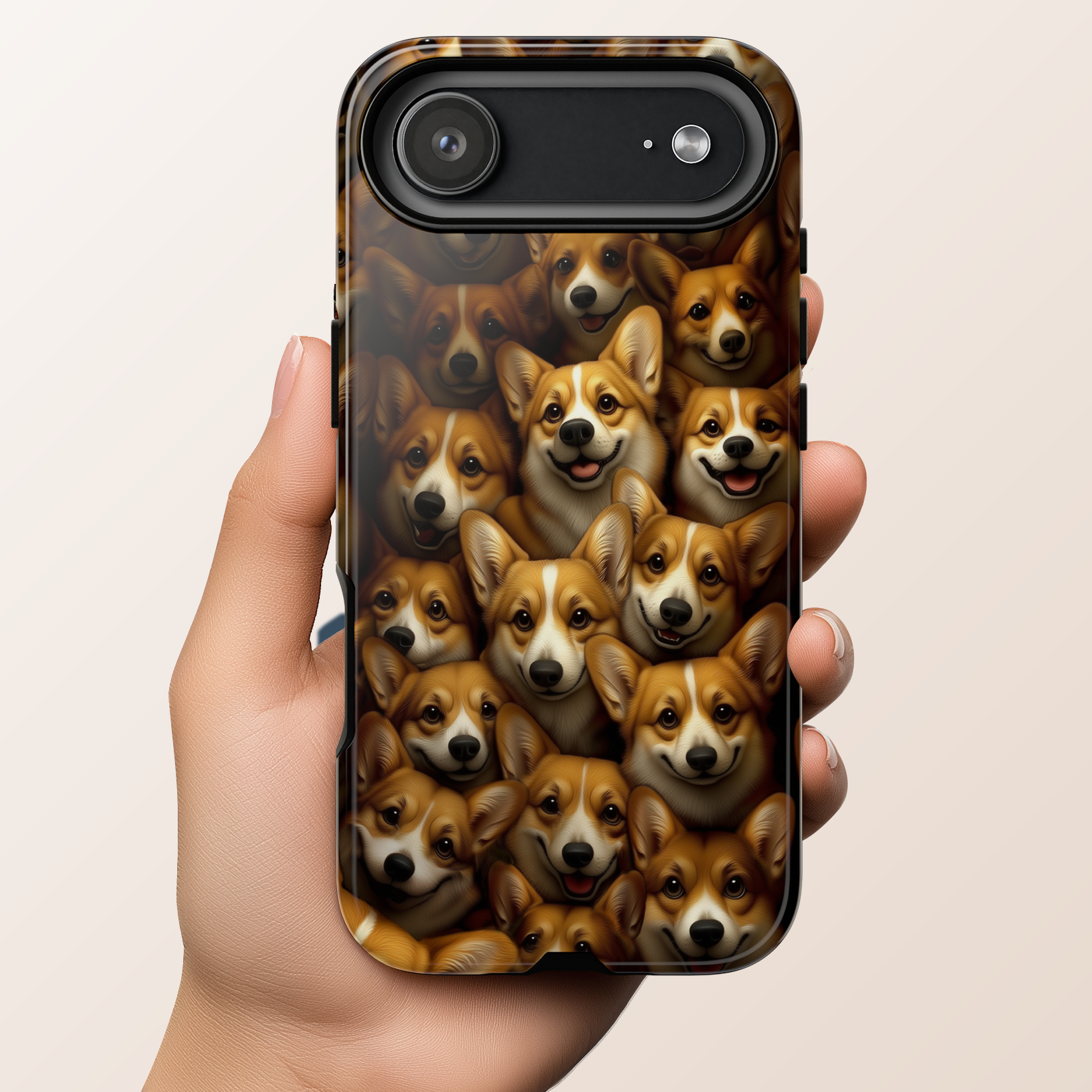 This Corgi phone case captures the breed’s signature grin and cheeky character, painted in warm tones that bring every face to life.