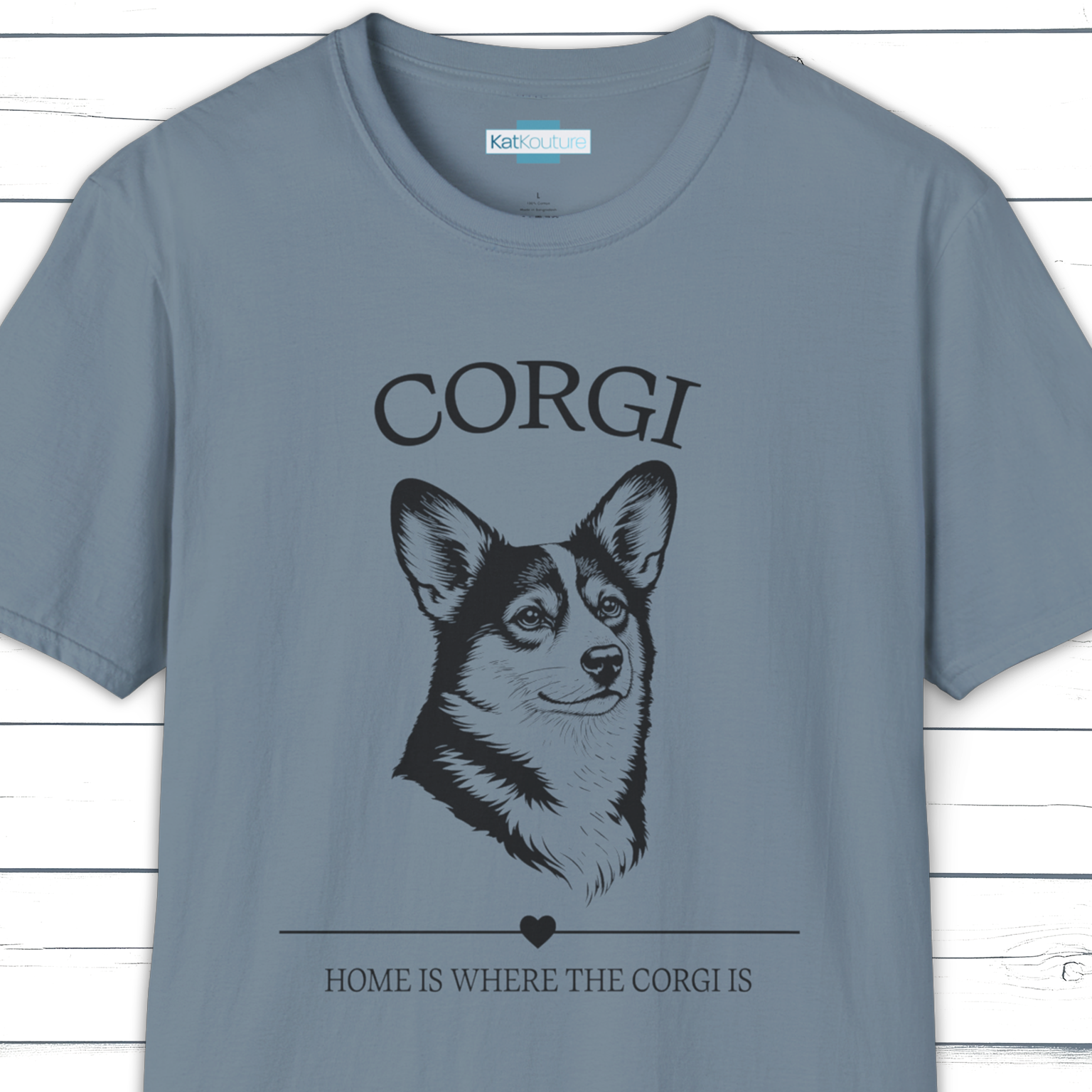 Bring a little Corgi love everywhere you go. This minimalist Corgi portrait t-shirt features a clean, character-led illustration paired with the phrase “Home Is Where The Corgi Is” — simple, warm, and instantly relatable for Corgi owners.