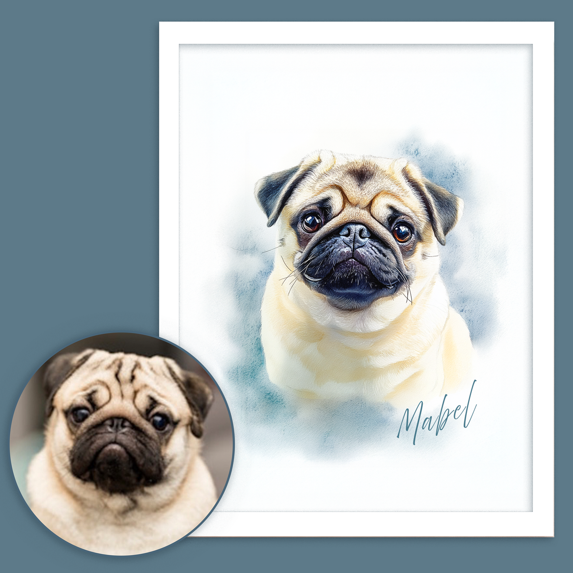Turn your beloved pet into a beautiful watercolour portrait – a heartfelt keepsake or thoughtful gift for any animal lover. Whether it’s a dog, cat, rabbit, or even a bearded dragon. I’ll create a detailed digital painting in a soft, expressive watercolour style of your lovely pet.
