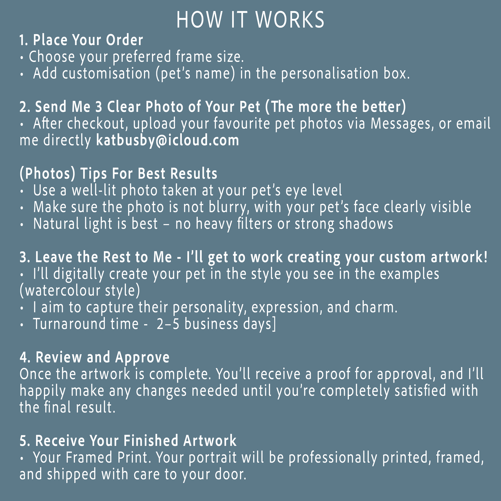 After checkout, upload your favourite pet photos via Messages, or email me directly katbusby@icloud.com