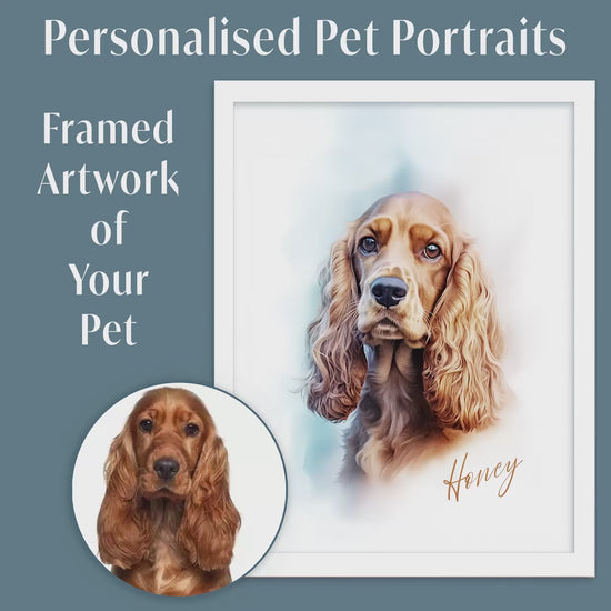 Custom Pet Portrait of your Pet Framed Print Watercolour Style with Name.