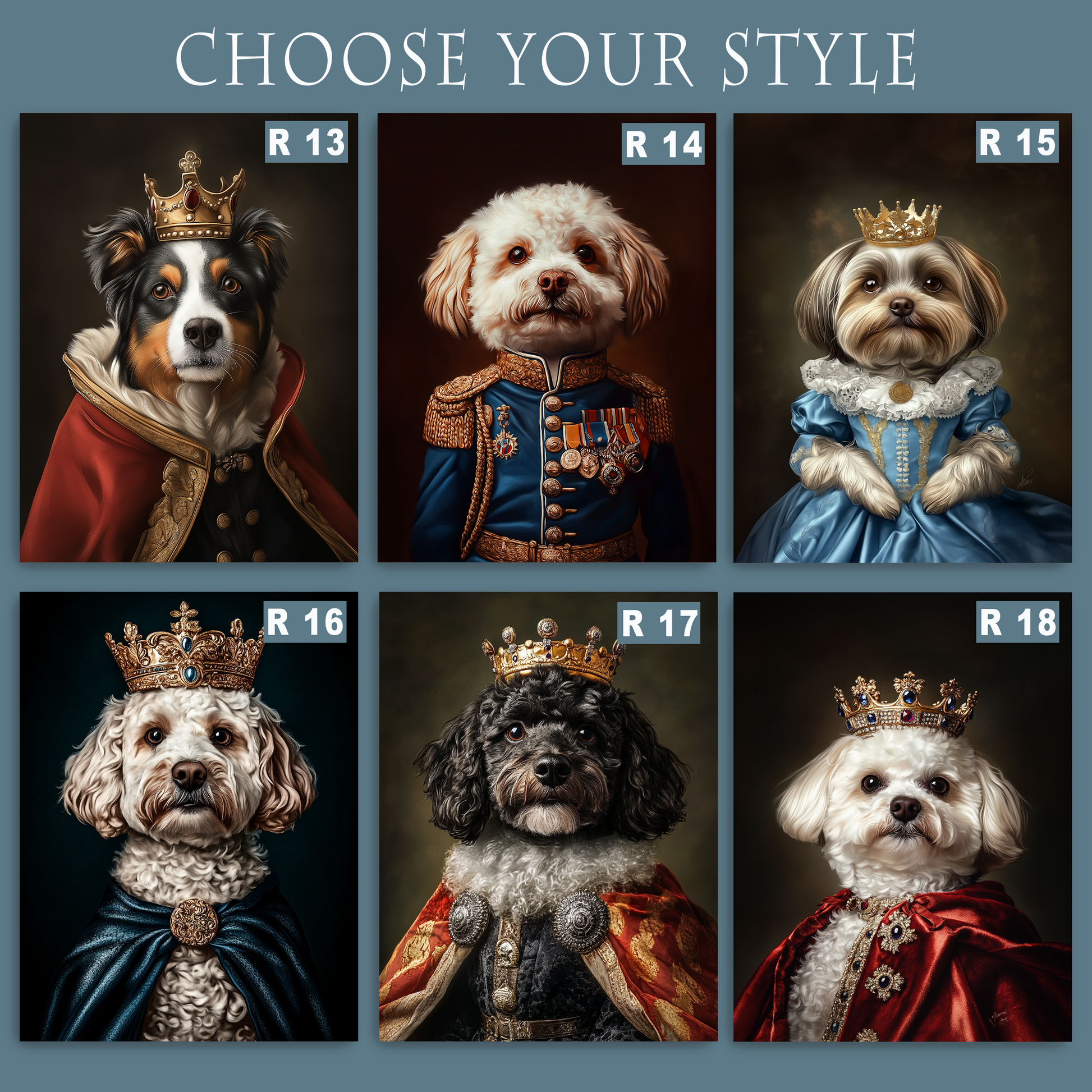 Transform your pet into royalty. This custom phone case features a regal portrait of your beloved pet, dressed in luxurious royal attire – whether it's a commanding knight, a noble queen, or a dainty duchess.