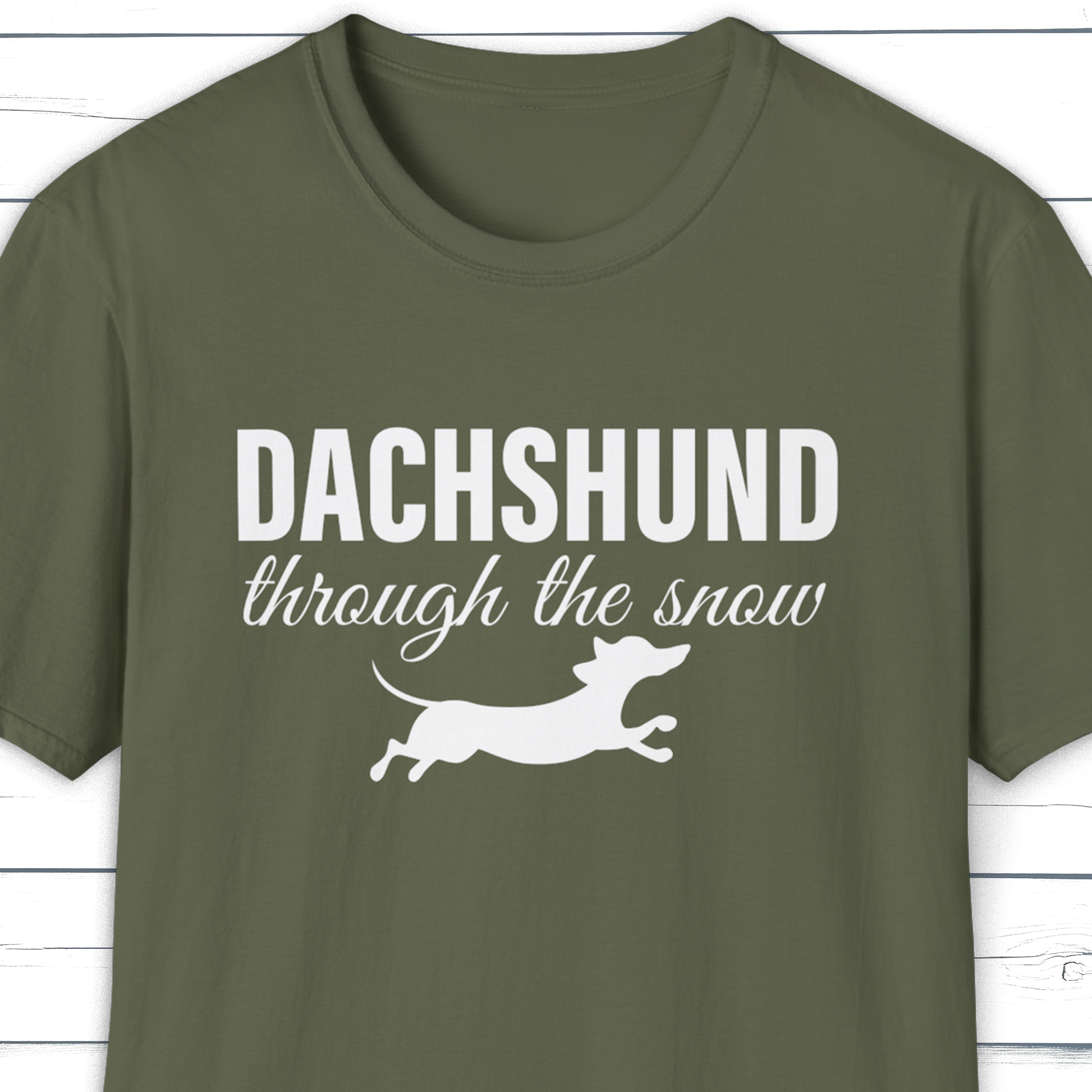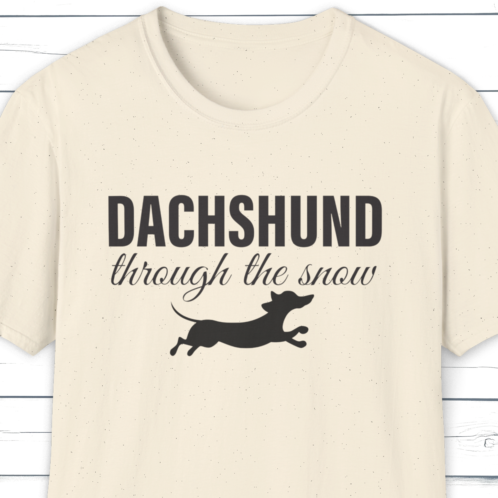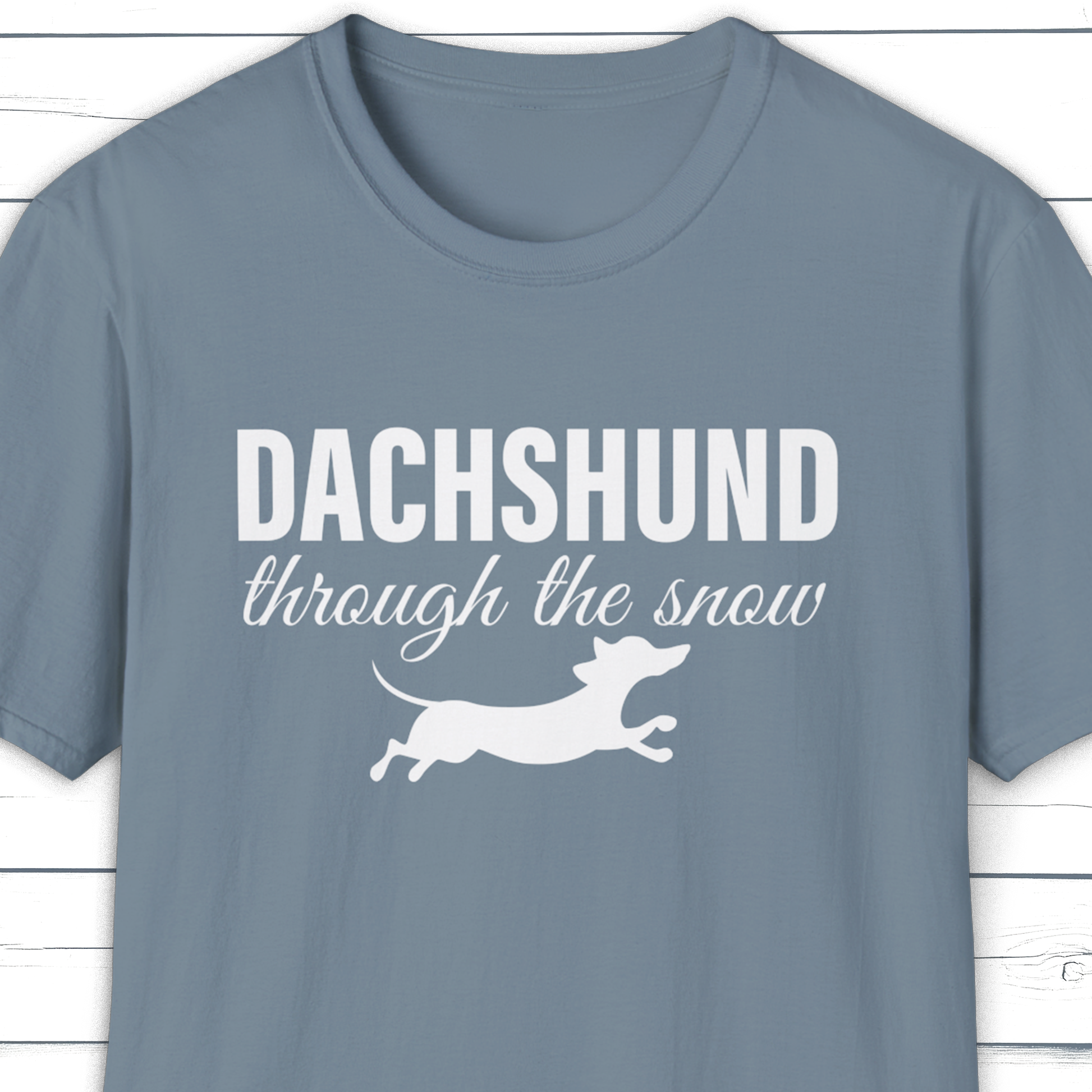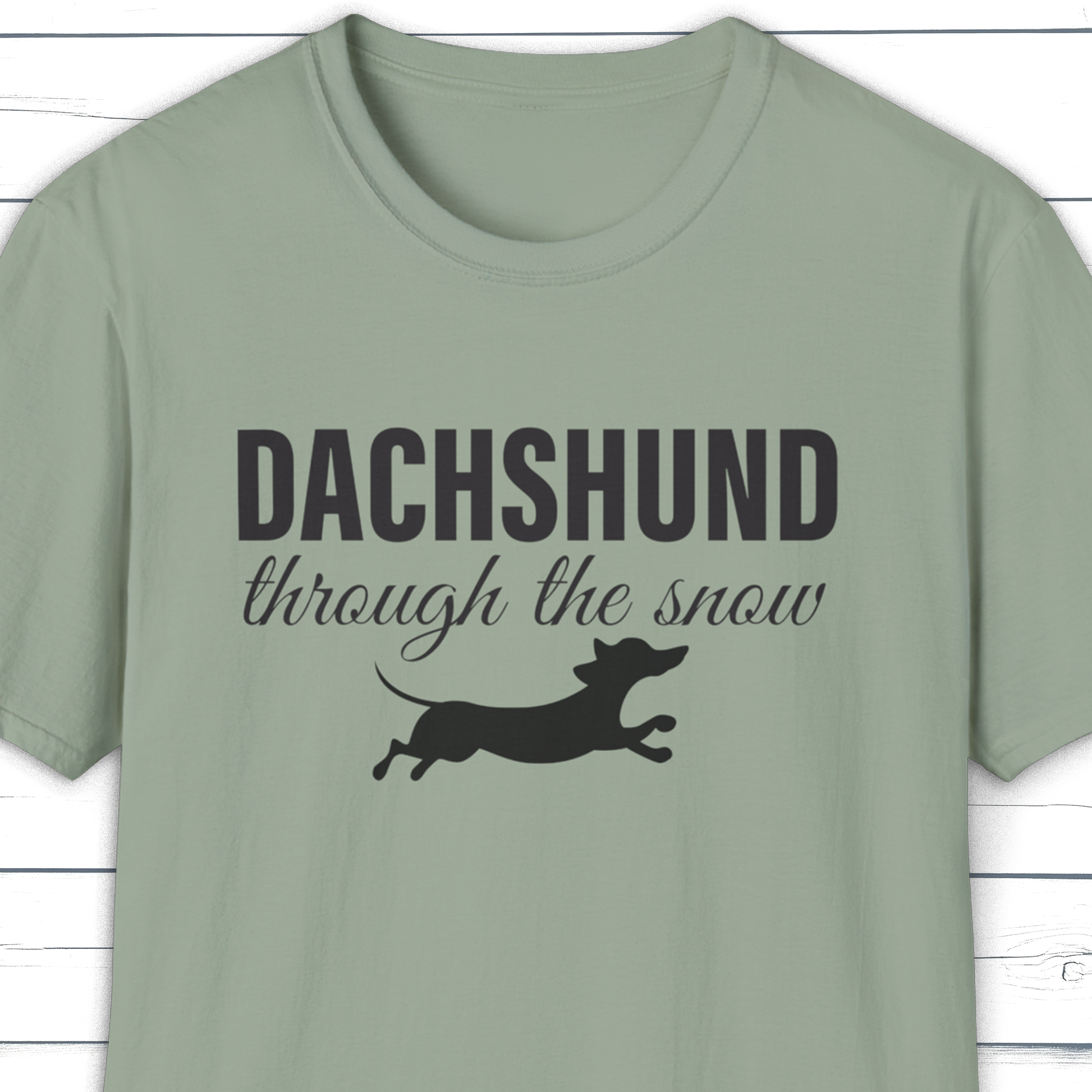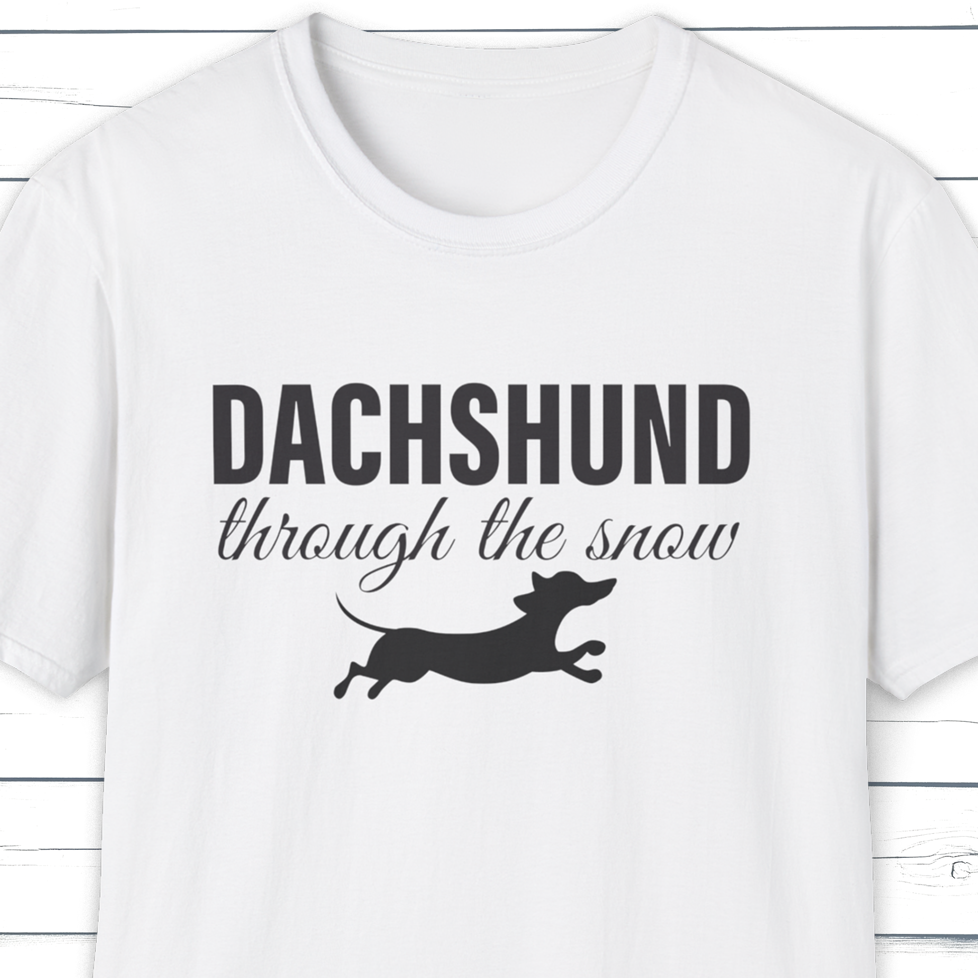 Celebrate your love for Dachshunds with this witty “Dachshund Through the Snow” t-shirt. Featuring bold typography and a playful dachshund silhouette, this design is clean, fun, and perfect for dog lovers.