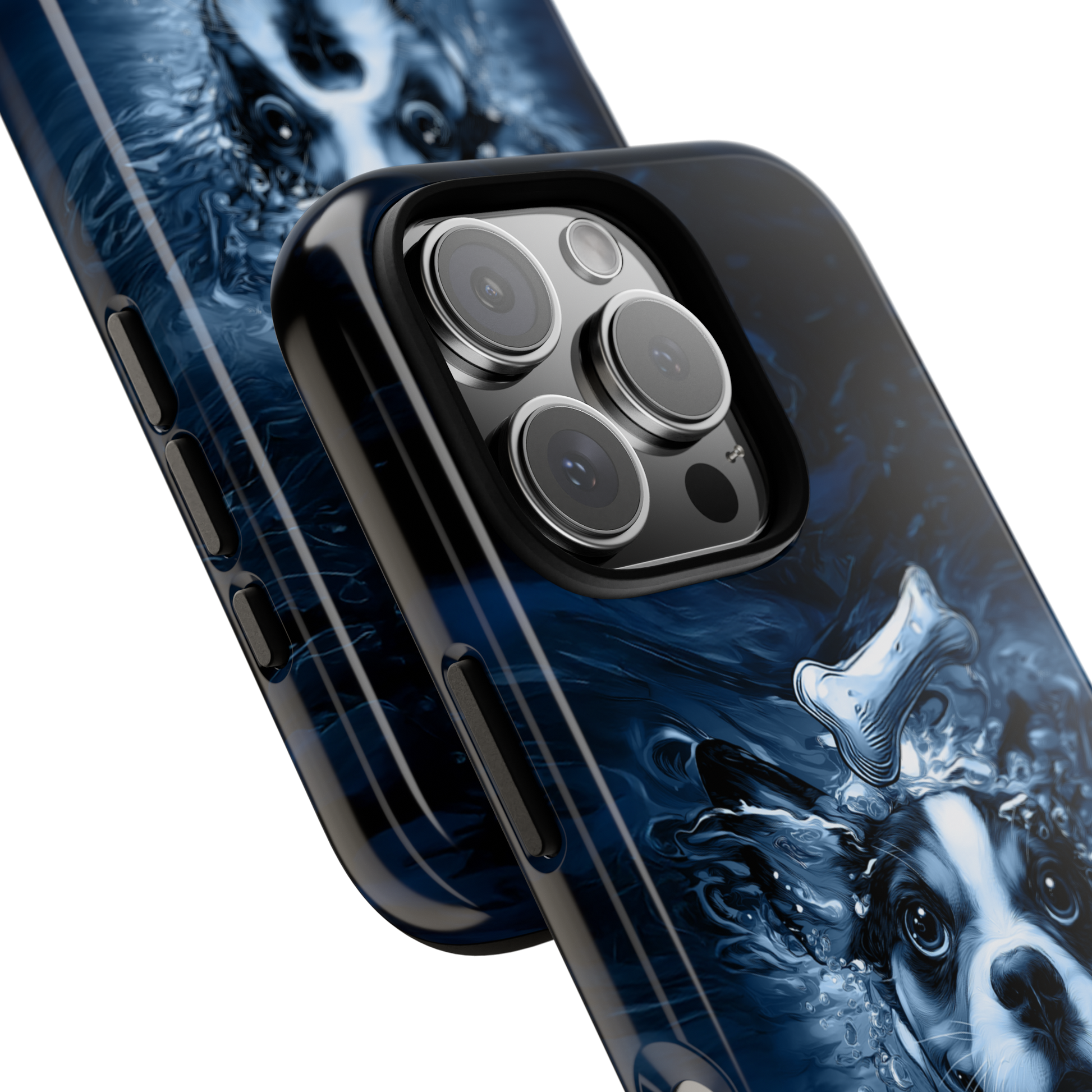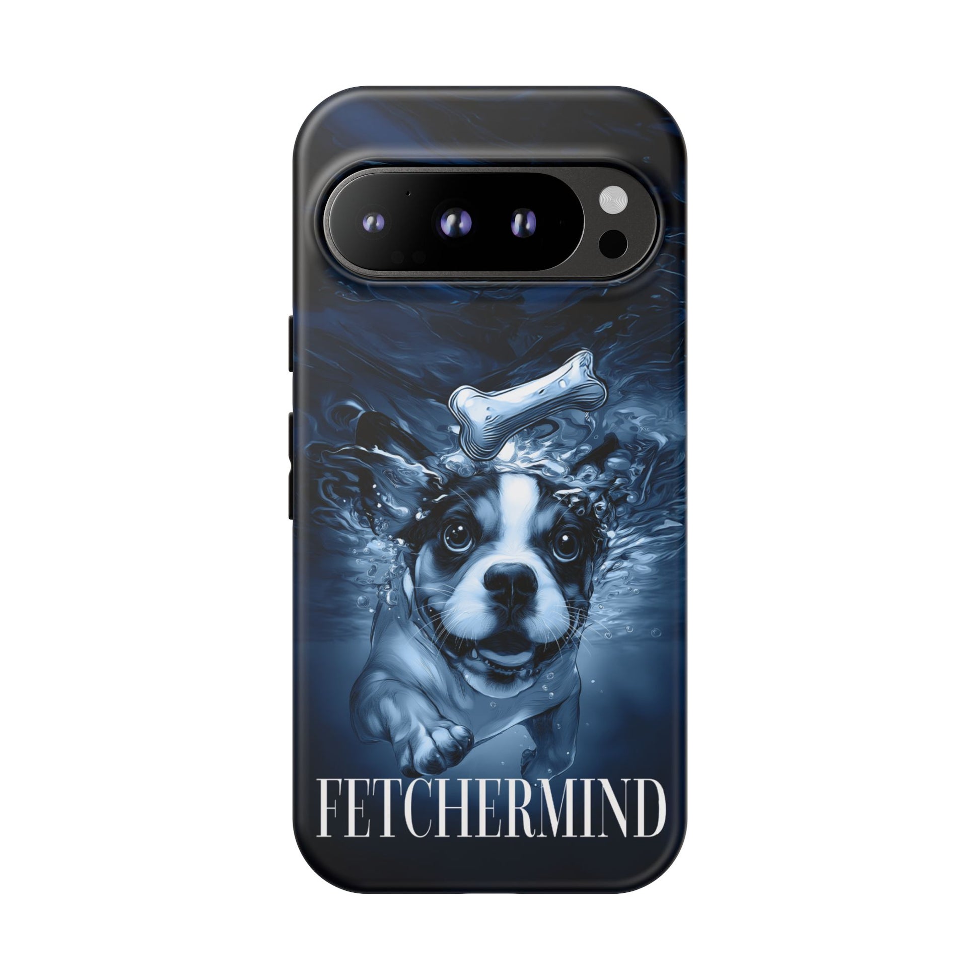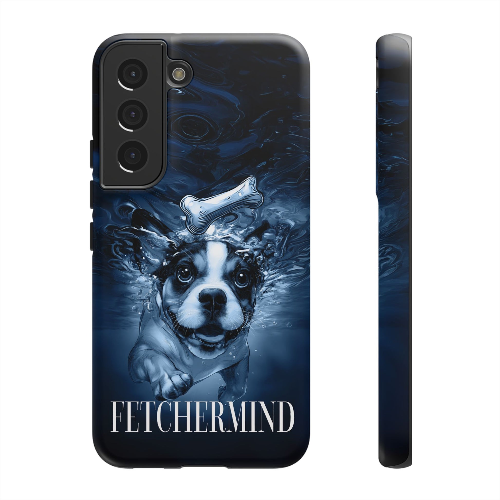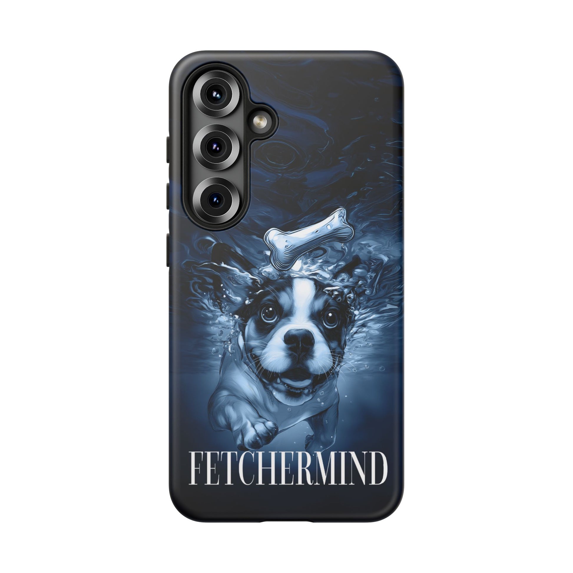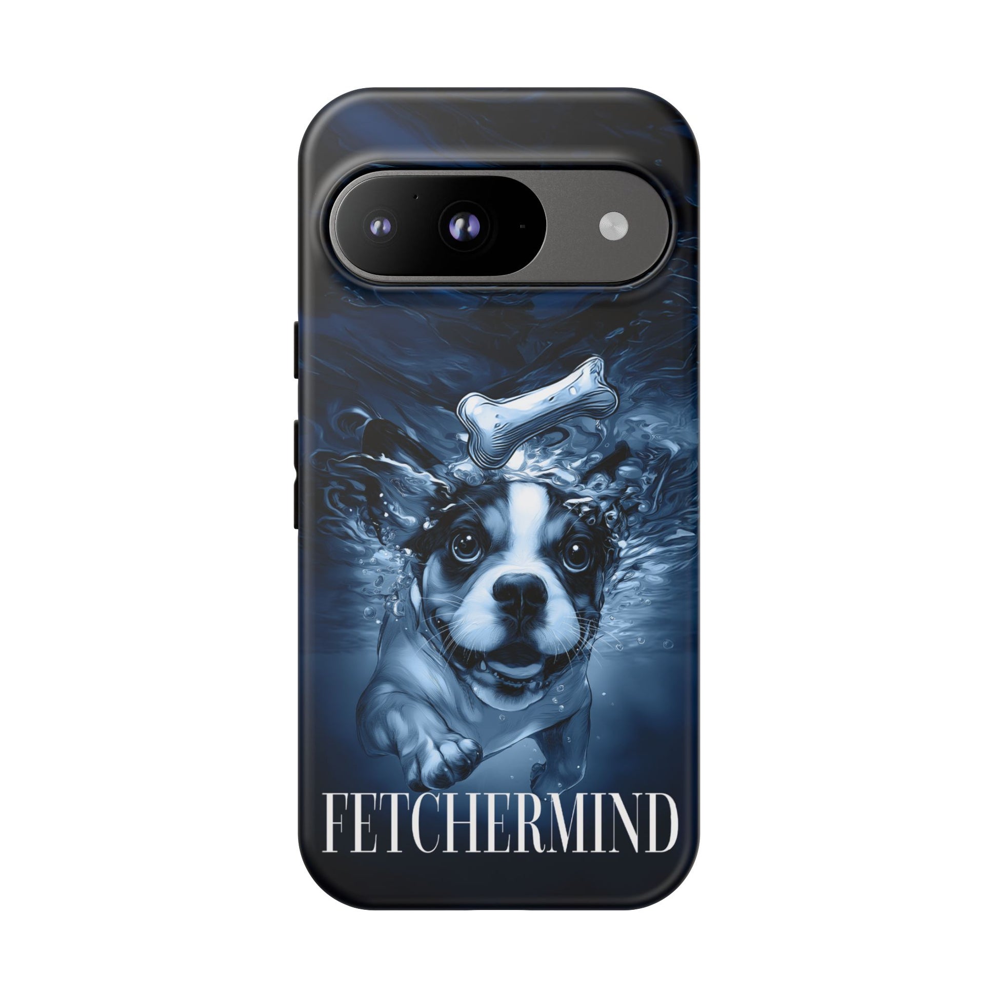 Dive into a bold, underwater parody inspired by Nirvana's Nevermind album art. Fetchingmind dog phone case. Featuring a dramatic deep-blue illustration of a pup swimming toward a floating bone, this design delivers instant attitude and album-art energy. Perfect for dog lovers who want something clever, striking, and totally unique.
