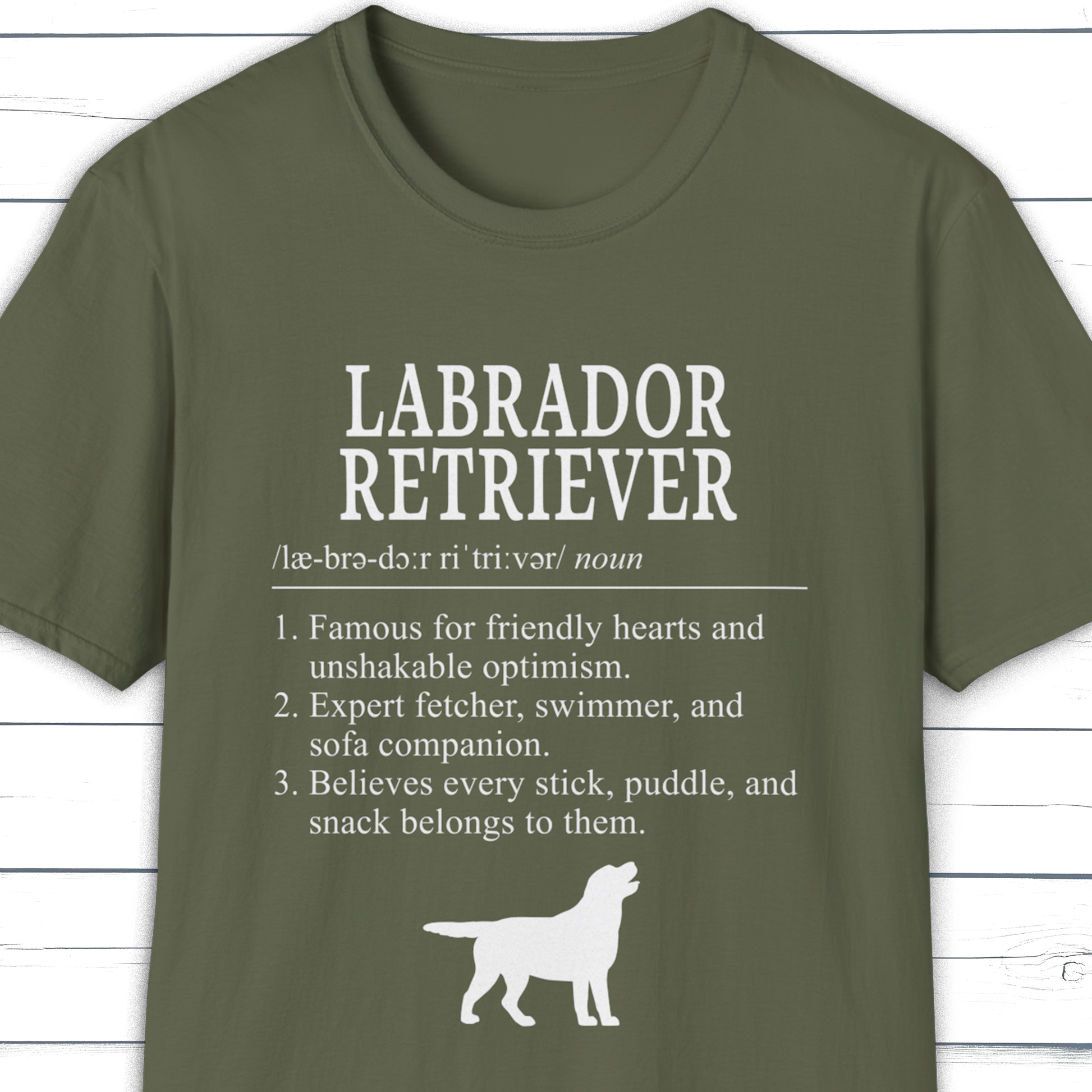 A clean, dictionary-style design celebrating the easy-going Labrador. Minimal typography and subtle humor make it a perfect gift for Lab lovers and dog enthusiasts alike. Printed on a soft, unisex tee — made in the USA.