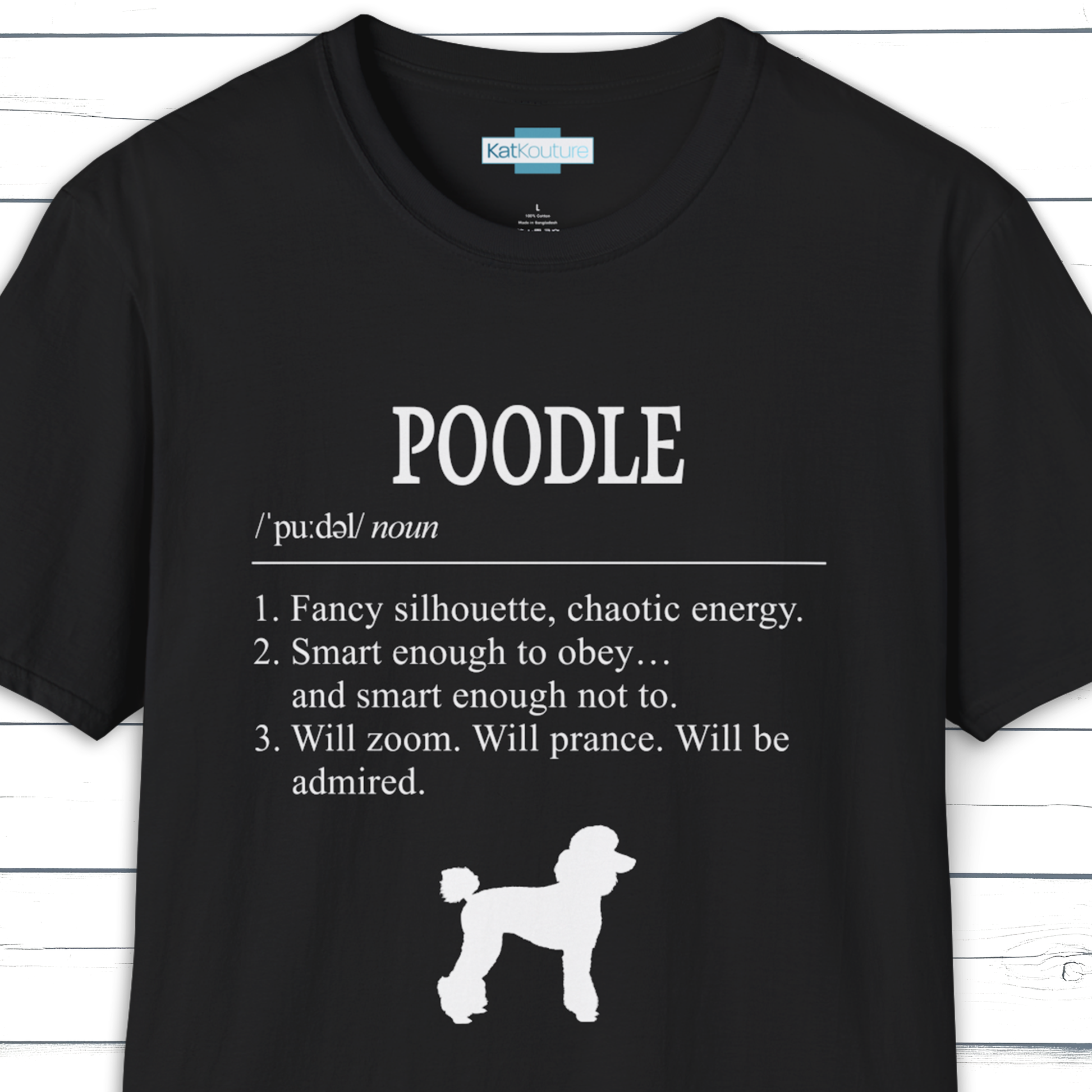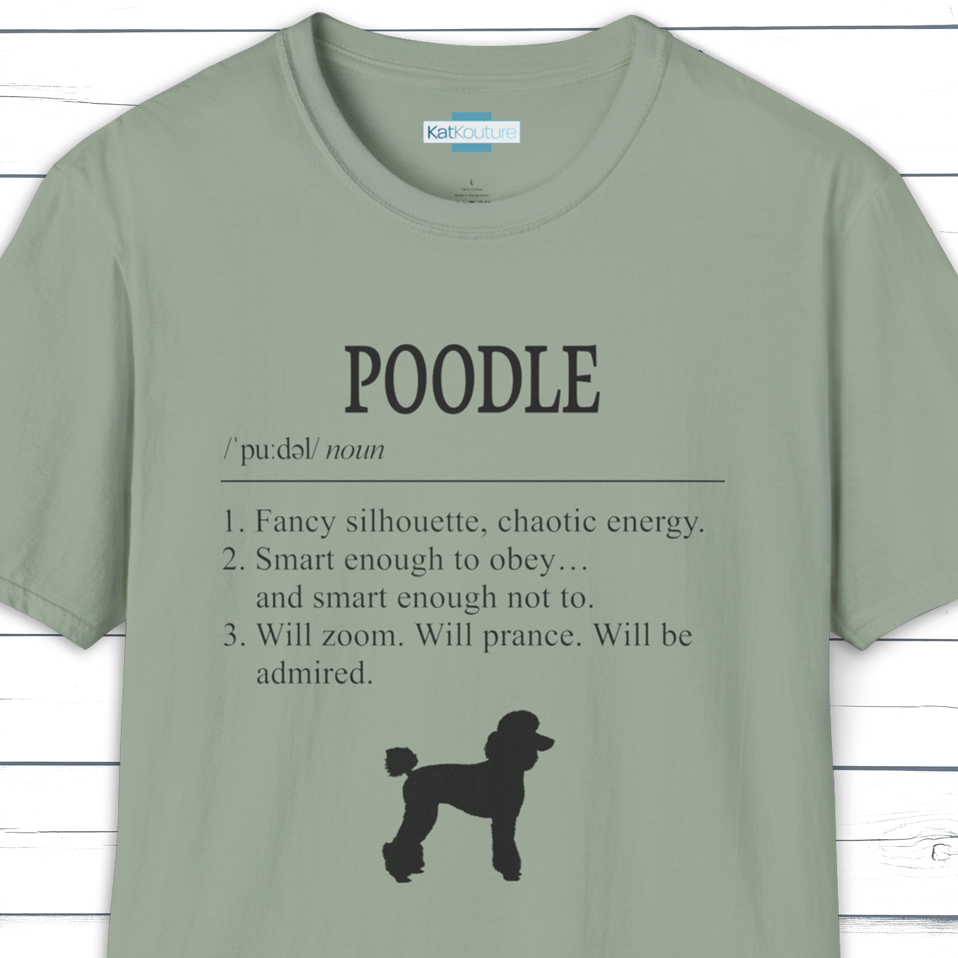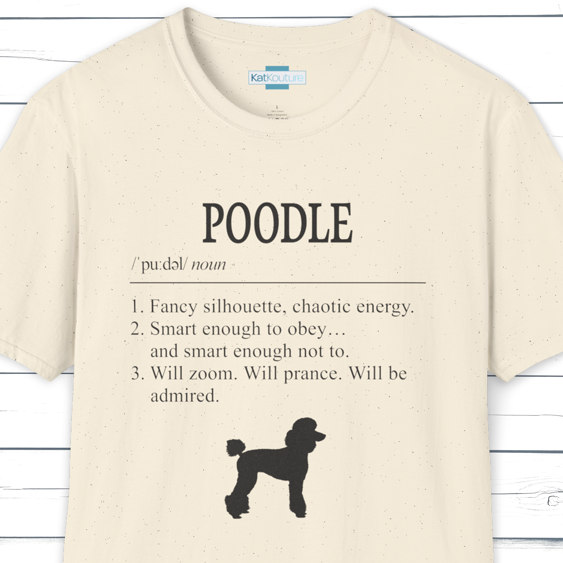 Part of KatKouture’s Dictionary Dogs Collection — a refined typographic design capturing the Poodle’s polished look and sharp personality. Presented in a classic dictionary layout with IPA pronunciation and three neatly observed traits.