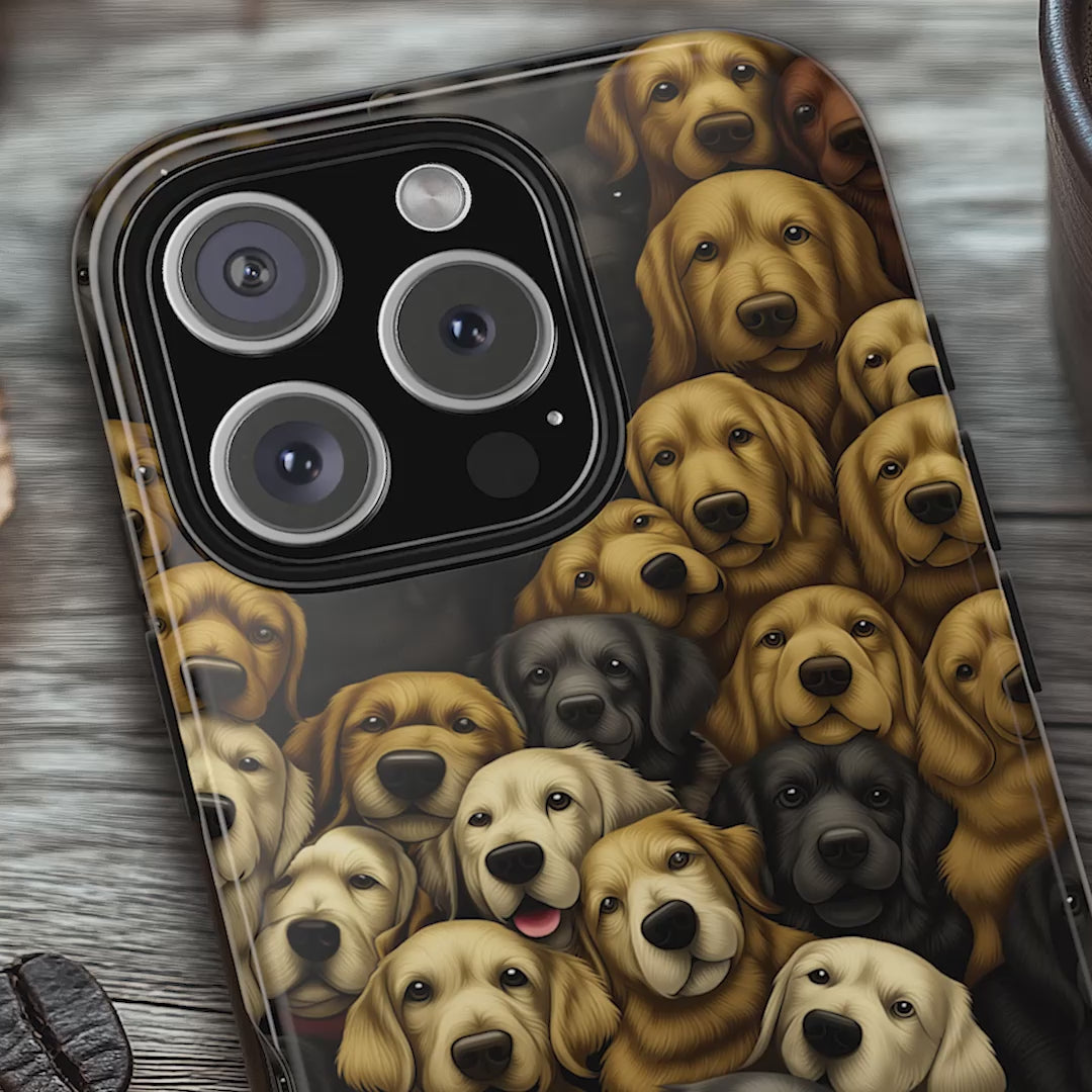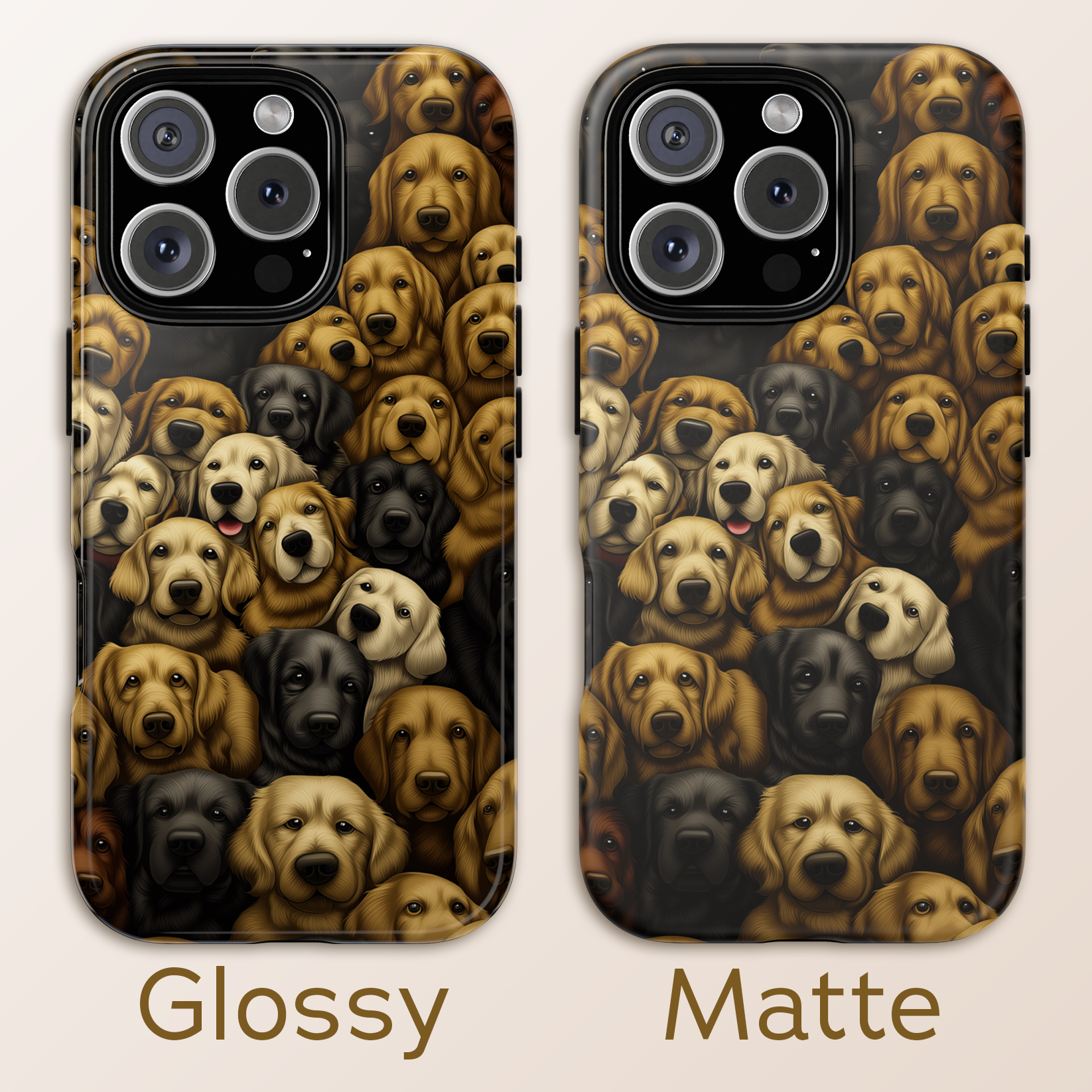 This Retriever Pack Phone Case features Golden and Labrador Retrievers in a beautifully detailed pattern — perfect for dog lovers who adore their loyal companions. Choose between a glossy or matte finish to suit your style.