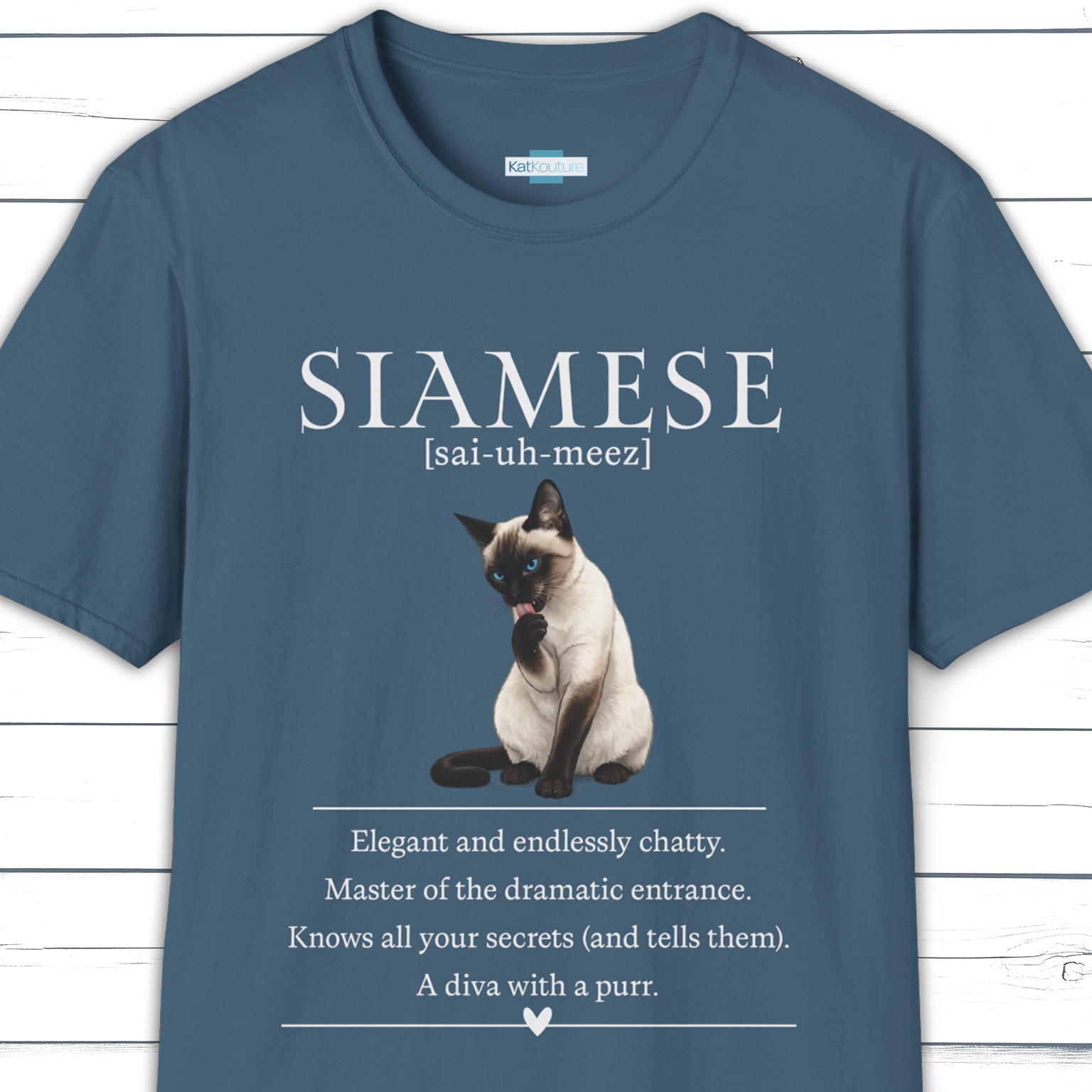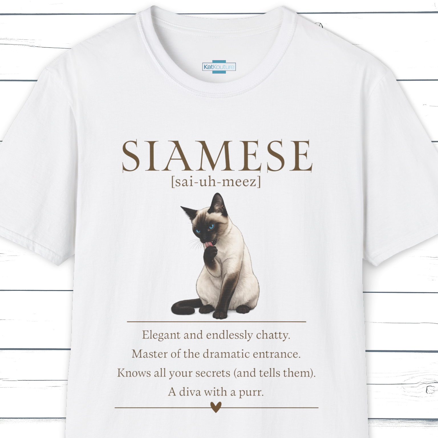 A clean, elegant Cat Chronicles design celebrating the unmistakable Siamese. Known for their beauty, confidence, and endless opinions, this illustration-led T-shirt is made for people who understand that Siamese cats are never just background characters.
